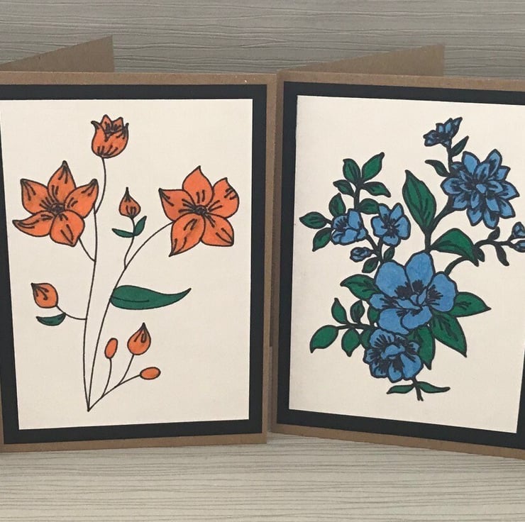 Mixed Flowers - the card base used for these is made from Kraft brown card to create a 'vintage' feel. Each card measures approximately 6ins by 4ins.