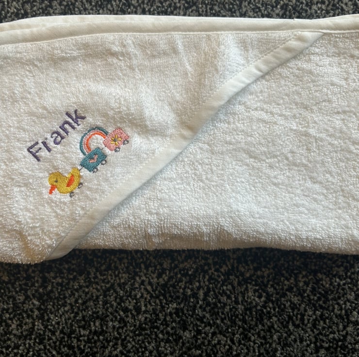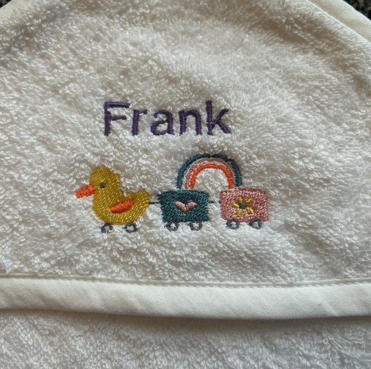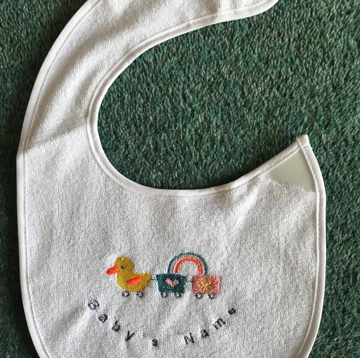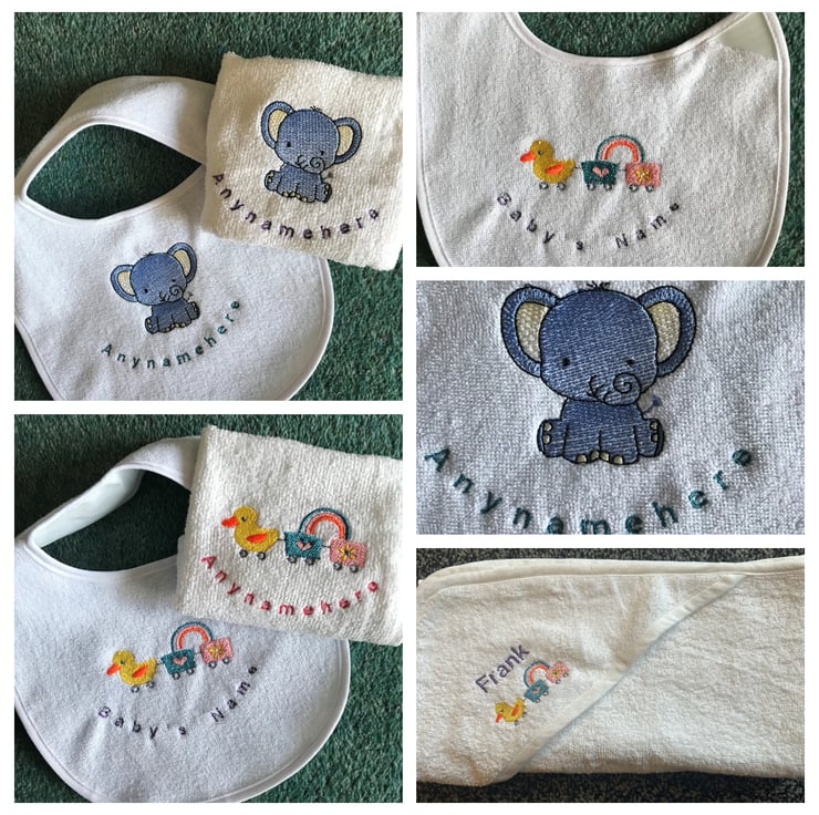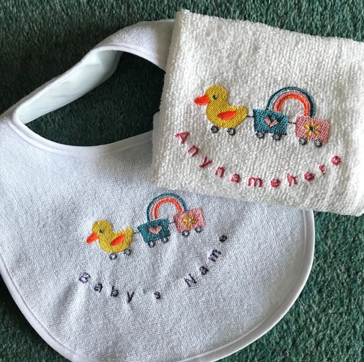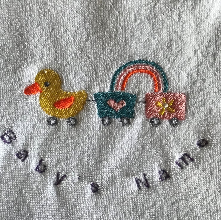 Lovely embroidered design - choose either the duck & carriages or the elephant.