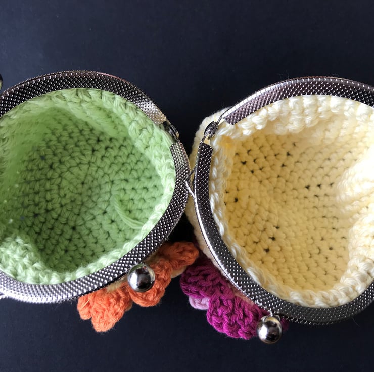 To make the purses you will need a knowledge of crochet skills including knowing how to crochet using an adjustable ring (or magic circle).
