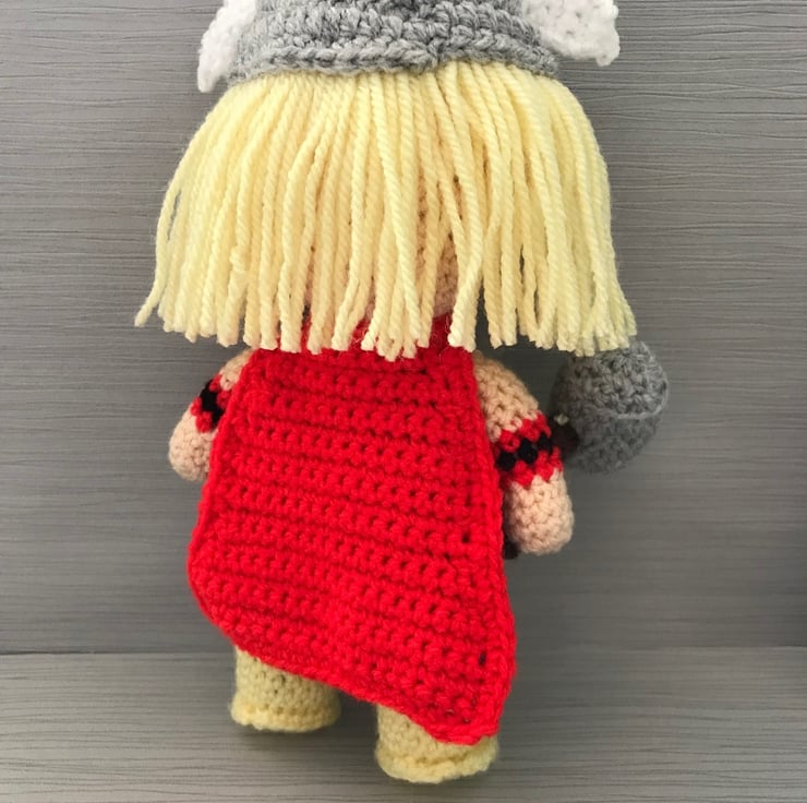 Hand crocheted Thor inspired doll which would make an ideal companion for any Marvel or super hero fan.