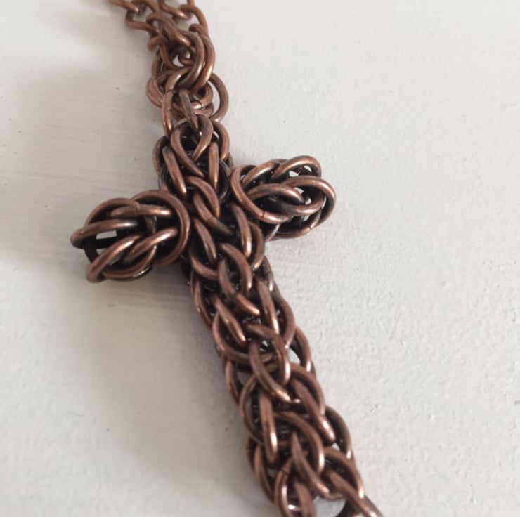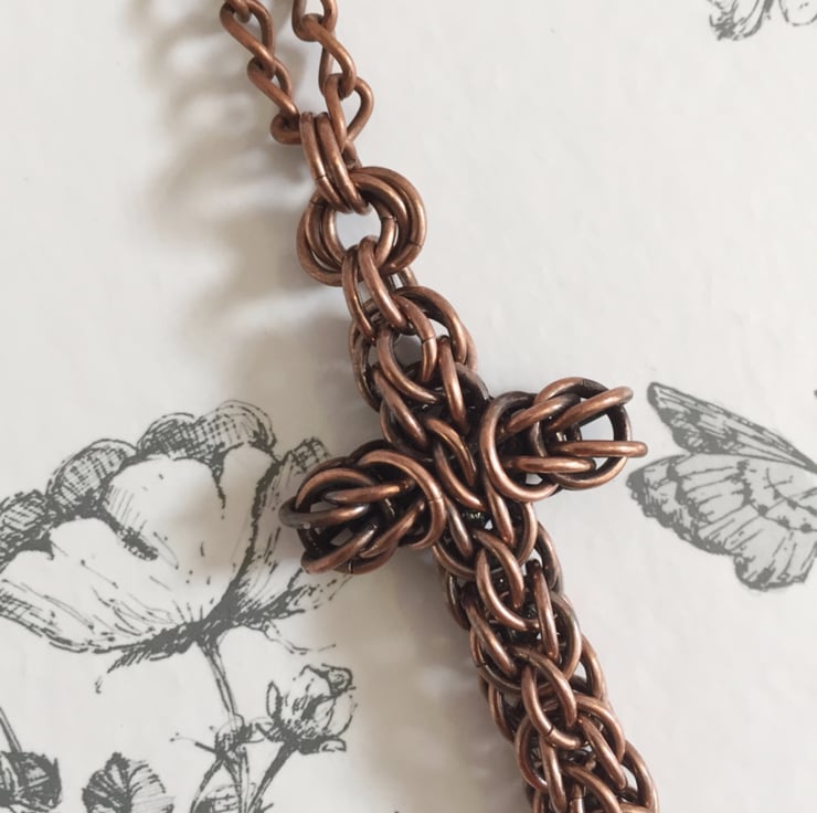I love making chainmaille cross designs and was thinking of a way of combining two different chainmail techniques.
