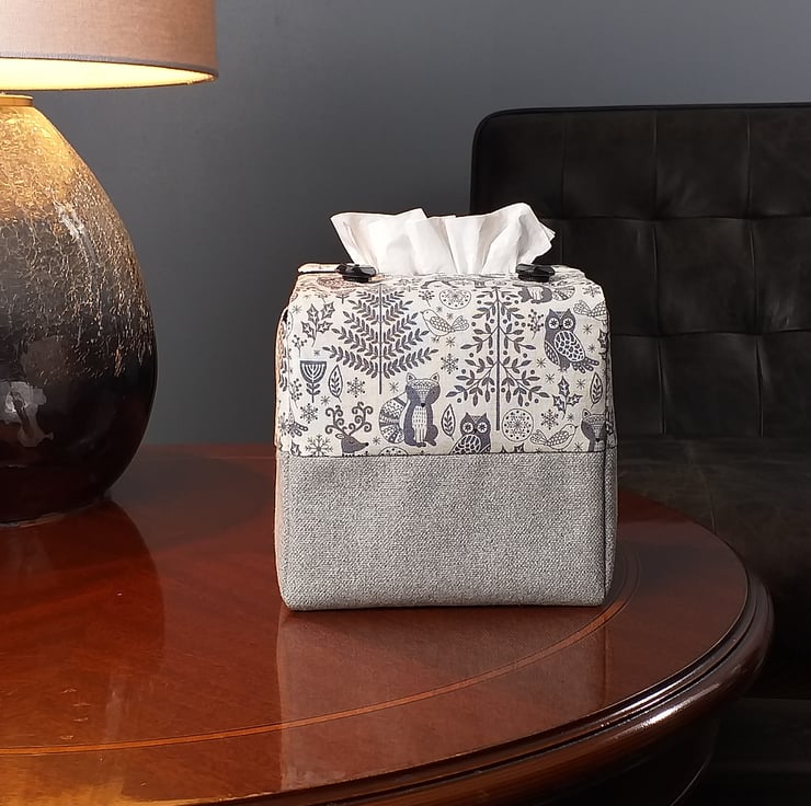Printed cotton tissue box cover handmade in Glasgow, Scotland
