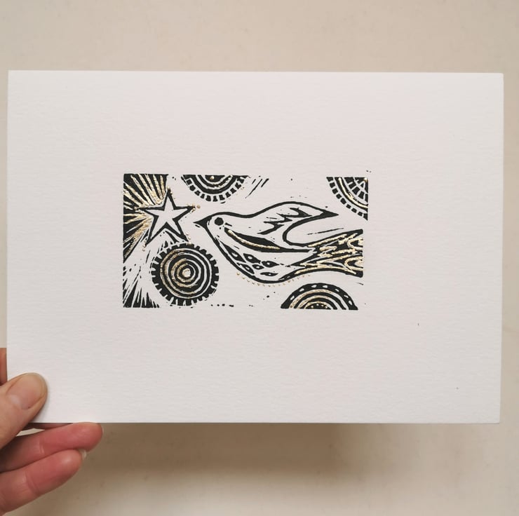 Original lino print available with gilded embellishments.