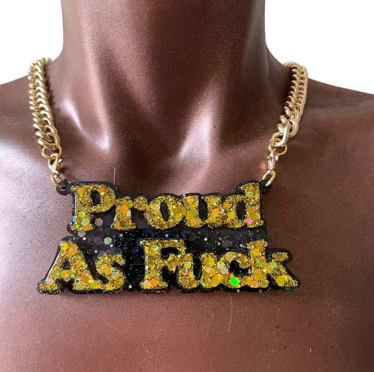 Proud As F k. 2 layer resin necklace with chunky gold chain. Can be made to colours of your choice with any chain or vegan suede cord seen in other listings