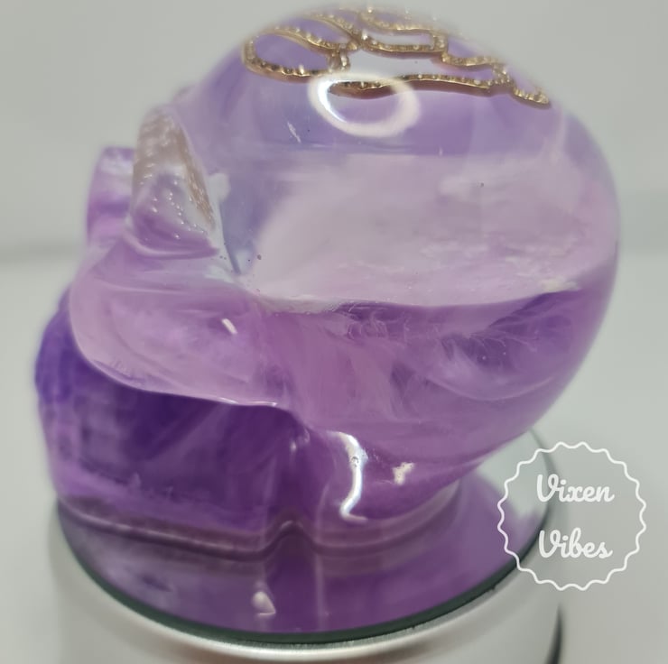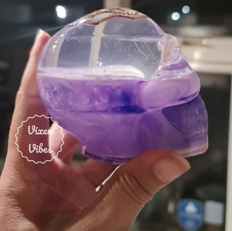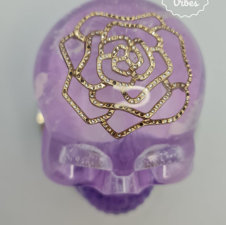 This is Violet! She is a resin skull with an upcycled jewellery piece in pride of place.