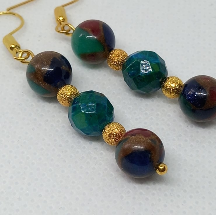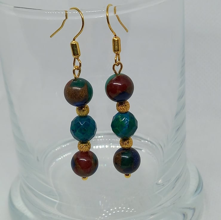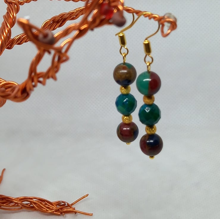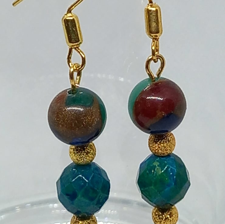 The matching earrings for the Chrysocolla and Faux Clinquant Bracelet, in gorgeous rich colours.
