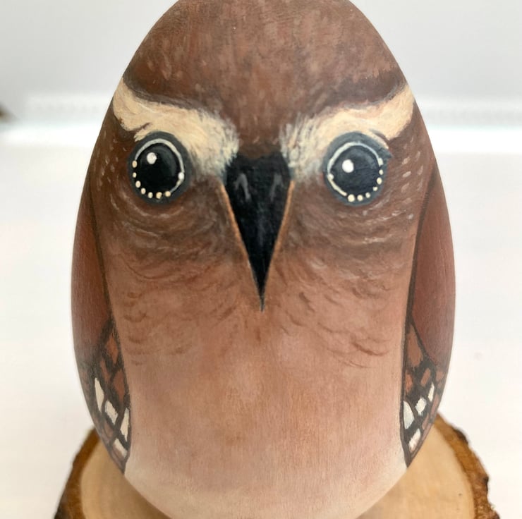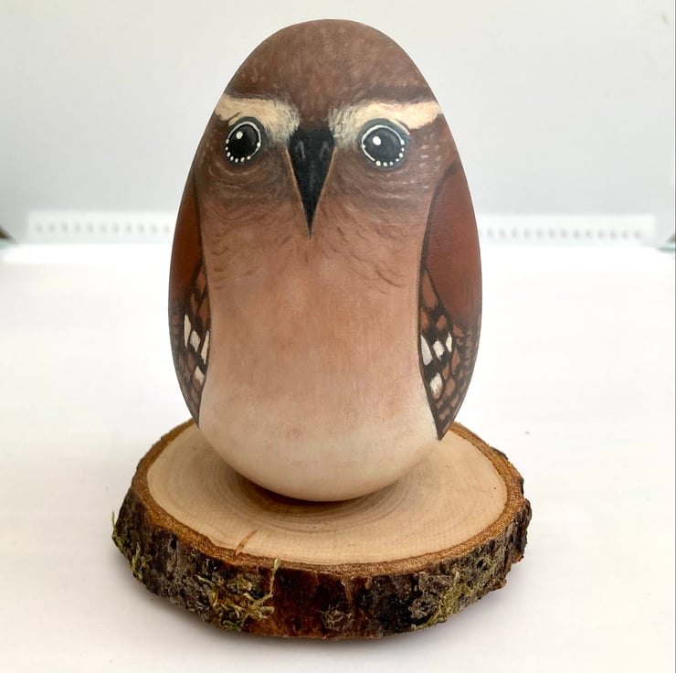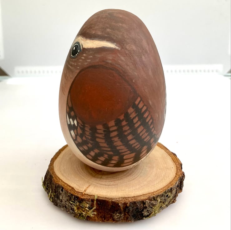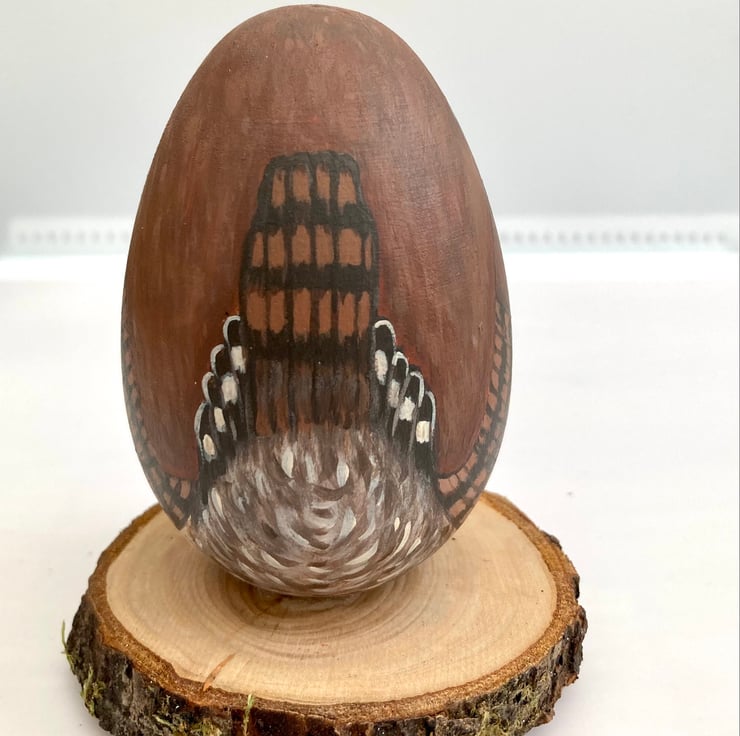 The egg measures 84mm x 50mm ( 3.3/8 x 2 inches) which is approximately the size of a small goose egg.