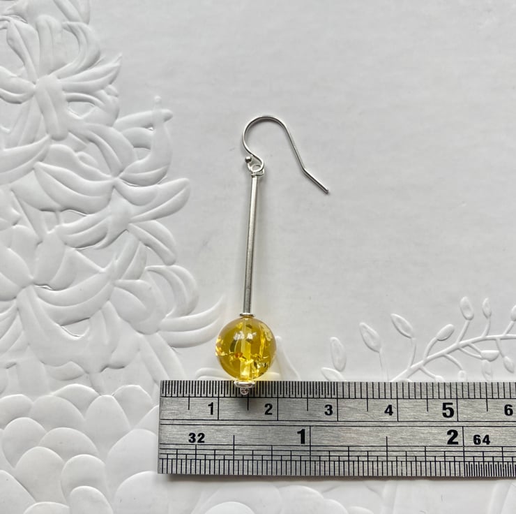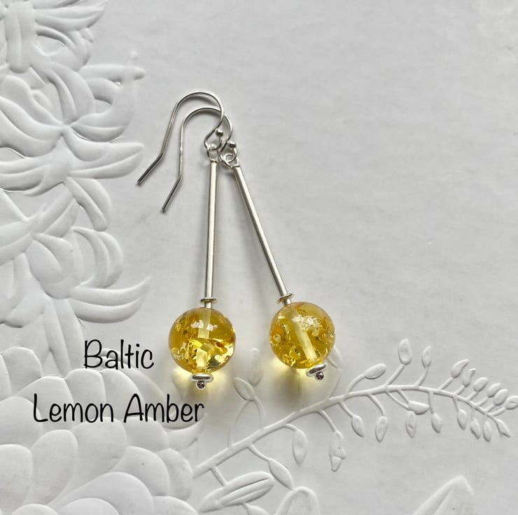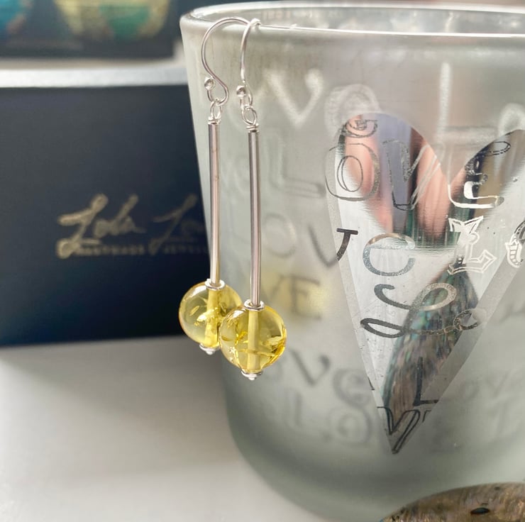 Beautiful handmade long drop Amber earrings featuring 10mm lemon Amber rounds and 925 sterling silver tubes. I have finished the earrings with sterling silver shepherd hooks. Gorgeous earrings that have lots of movement and are so light to wear.