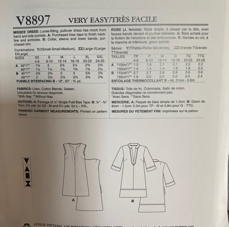 Easy Vogue Loose dress pattern, XS - XXL brand new uncut pattern