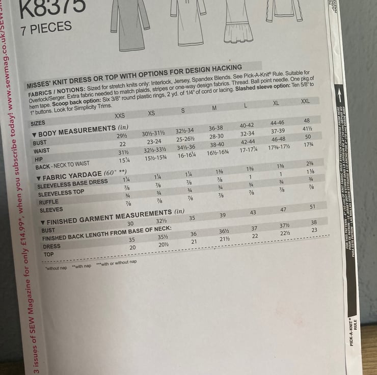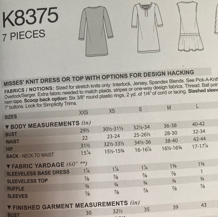 Simplicity Pattern Hacking Knit Dress K8375 XXS - XXL unused, uncut pattern.