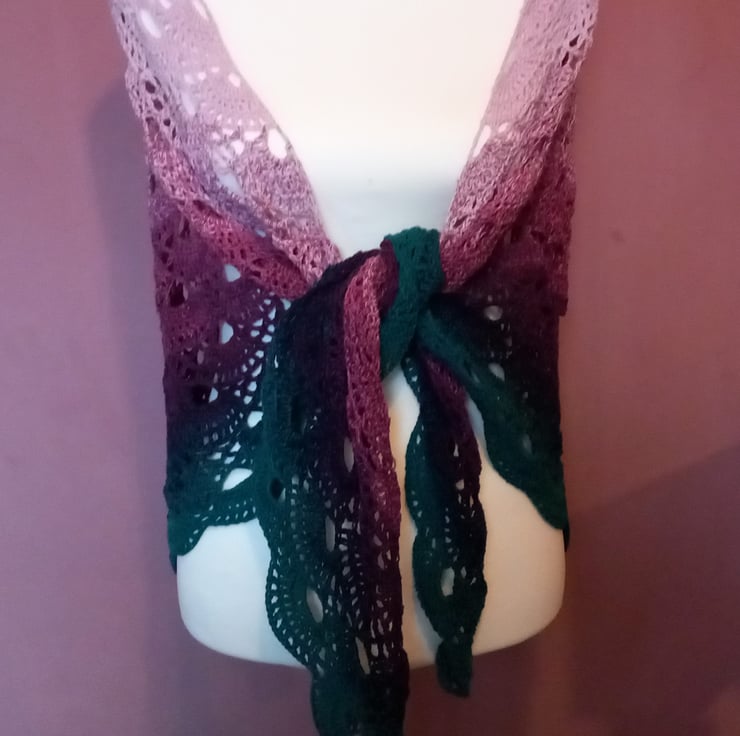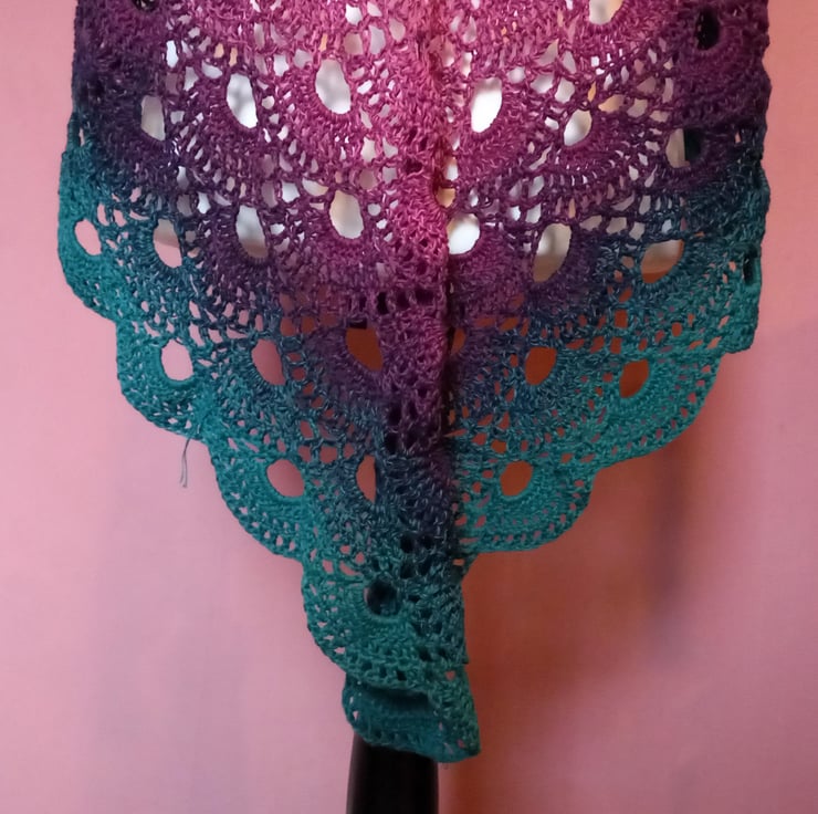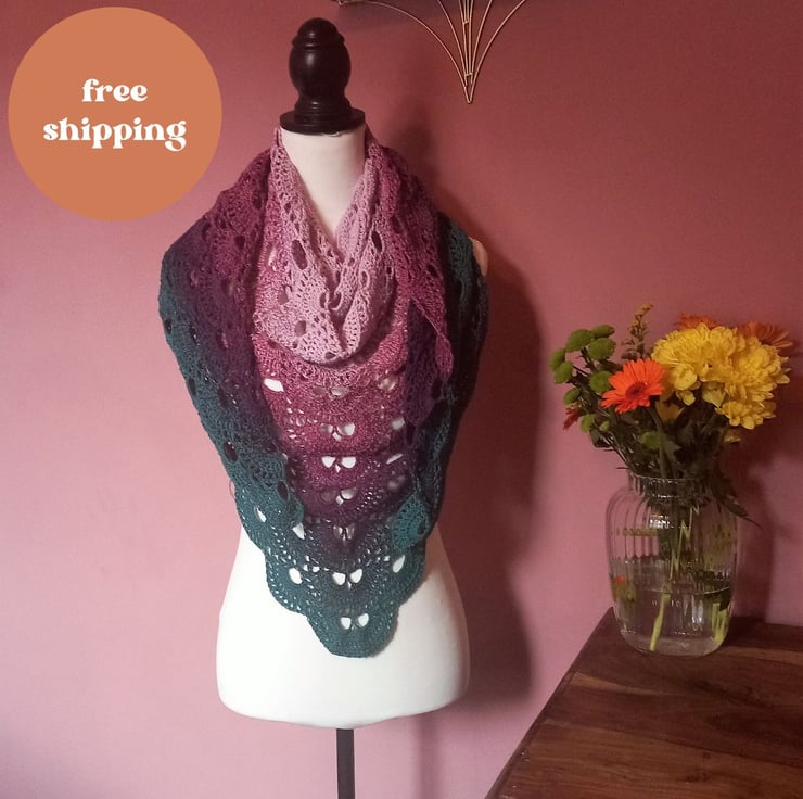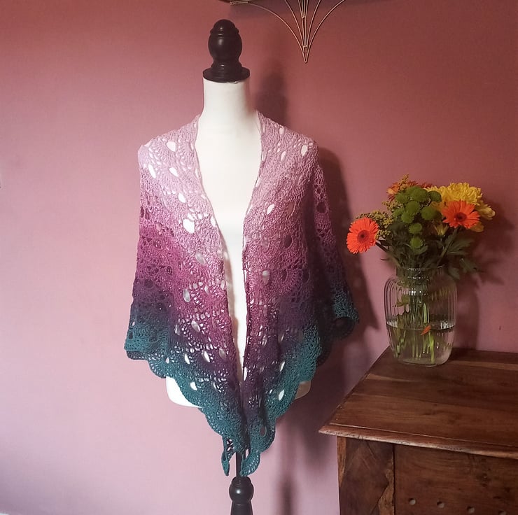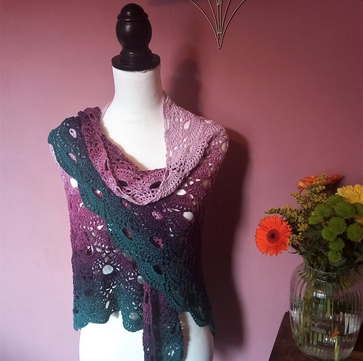 Lace Virus Pattern Evening Shawl in Pink, Purple, Teal, and Navy
