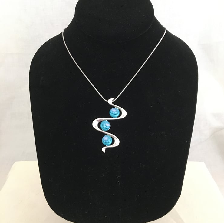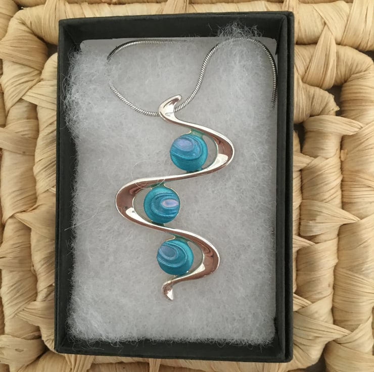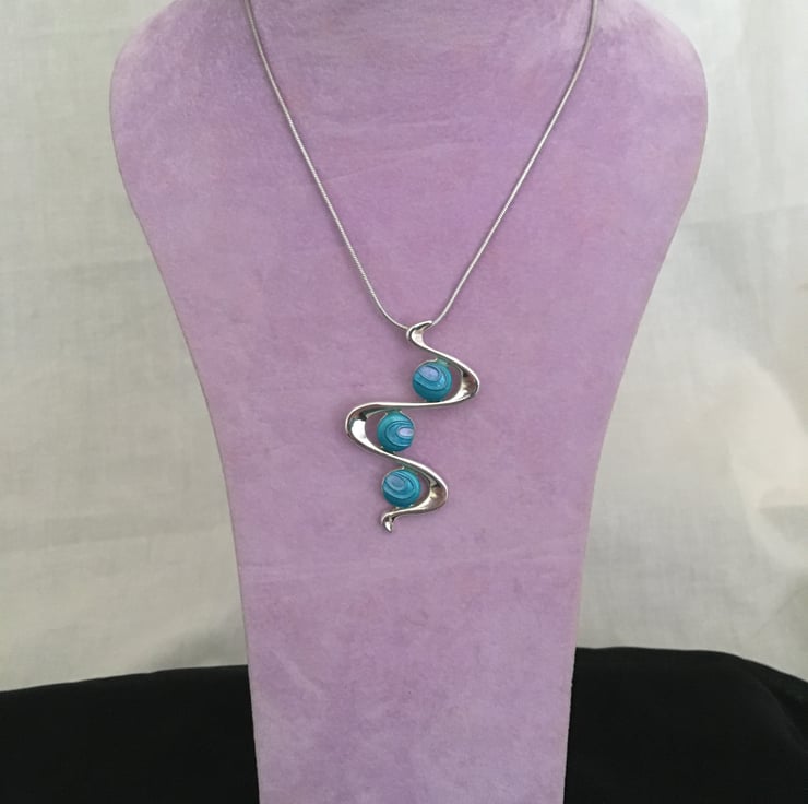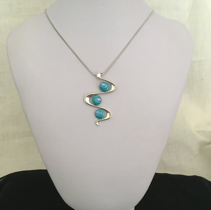 An azure 3 drop snake pendant in a quality silver plated setting.