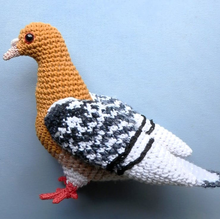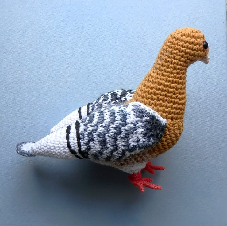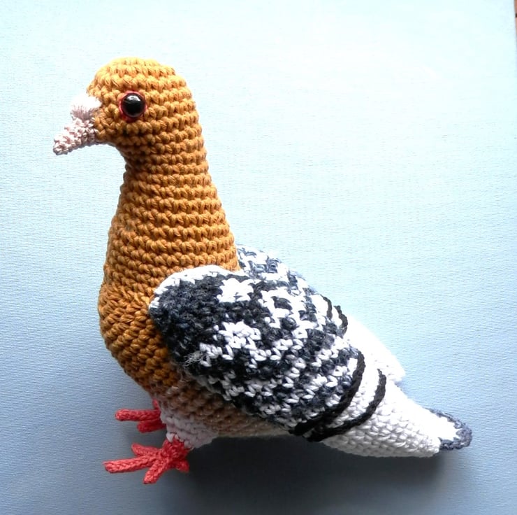 Beautiful, colourful crochet pigeon made from various yarn types but mostly cotton. Fitted with safety eyes (not recommended for children under 3 years old). The filling is 100% polyester. The size of the pgeon is approximately 7cm tall x 7.5cm long. This would make a lovely room decoration or a gift for a pigeon lover.