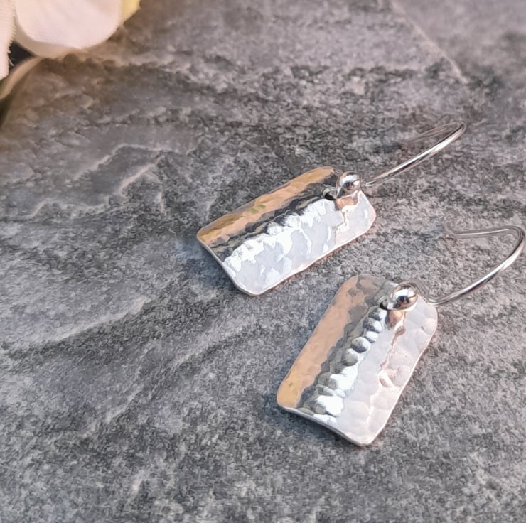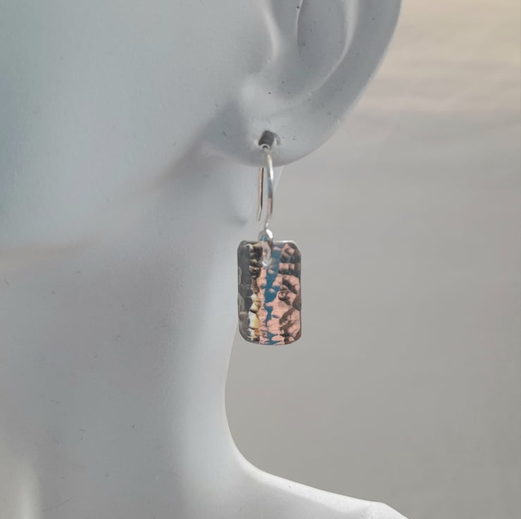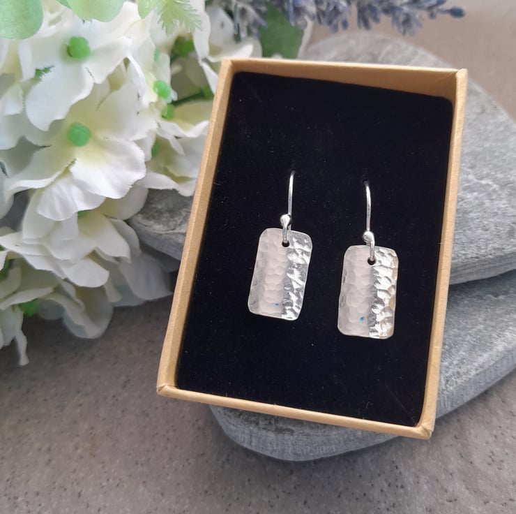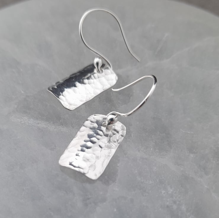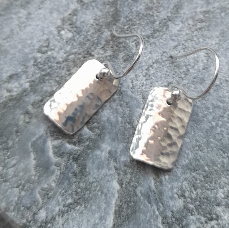 Argentium silver bars which have been hammered to give texture and shine, they have then been attached to argentium silver handmade ear wires