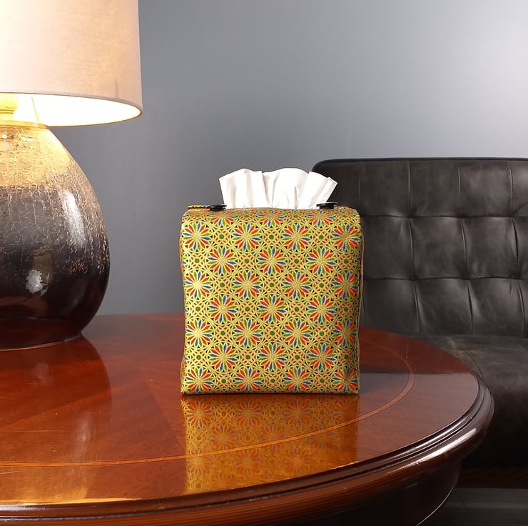 Printed cotton tissue box cover handmade in Glasgow, Scotland