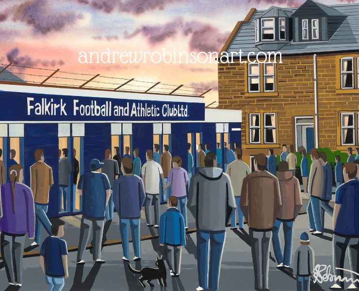 Titled ‘Brockville Thrill’ this is a unique Falkirk F.C print direct from myself the artist. My artworks are a celebration of the match day experience and of stadium architecture.