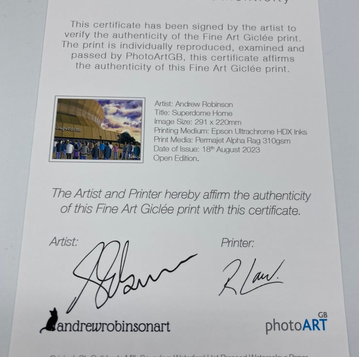 Titled ‘Superdome Home' this is a unique New Orleans Saints framed print direct from myself the artist. My artworks are a celebration of the match day experience and of stadium architecture.
