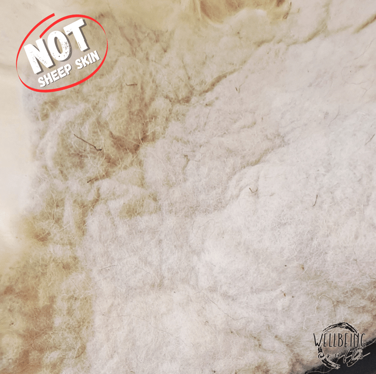 NO SHEEP WERE HARMED DURING THE PROCESS. THESE ARE FELTED FLEECE RUGS NOT SKINS