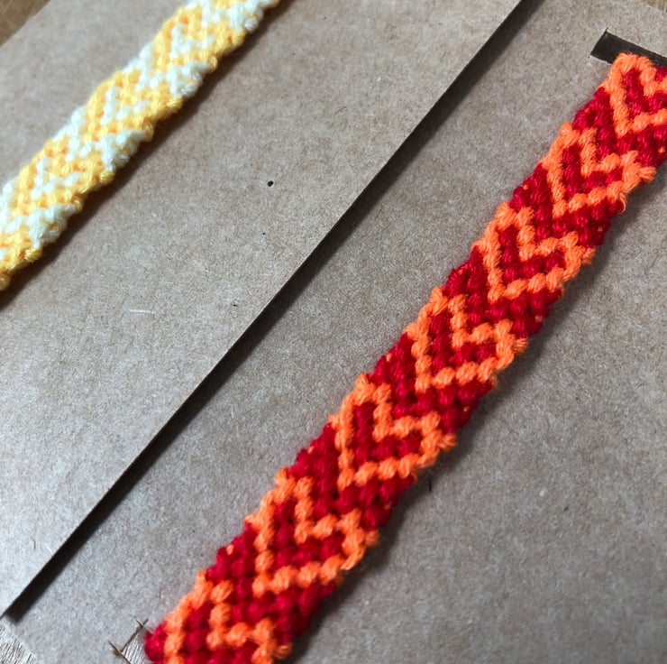 These handmade friendship bracelets are made with a heart shaped design! I only have one of each design left so get in there quickly if there's one you especially like.