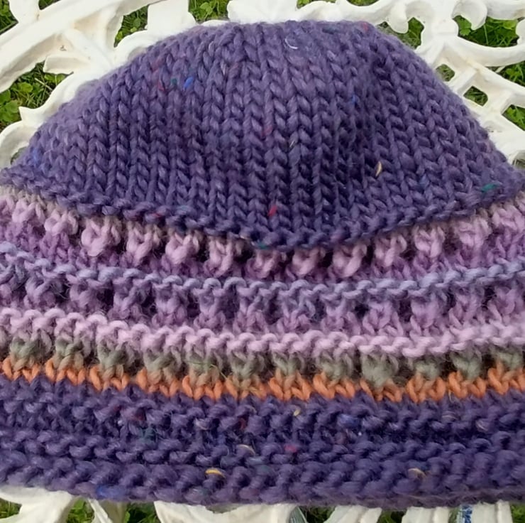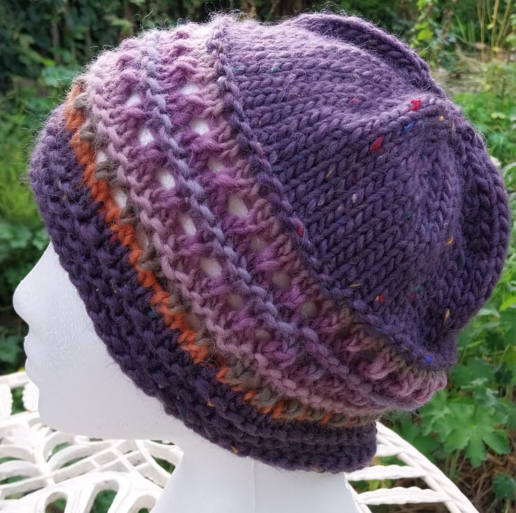 This hat is made from a gorgeous, soft, tweedy, chunky merino from Sublime and a multicoloured 100% Wool contrast.