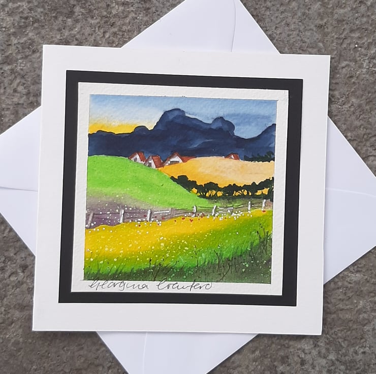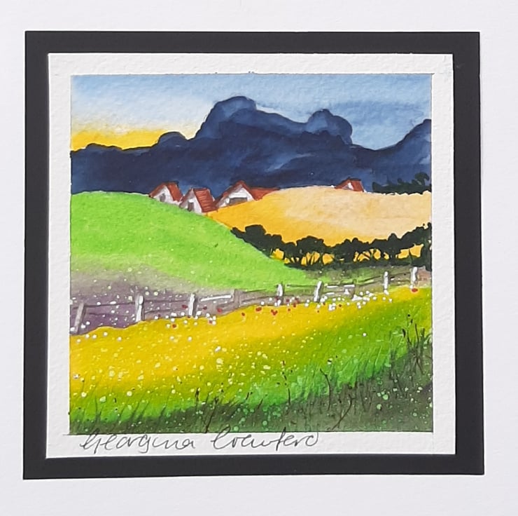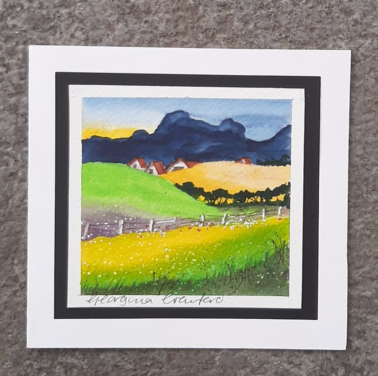Handpainted Watercolour, mounted onto black paper then soft-white Card.