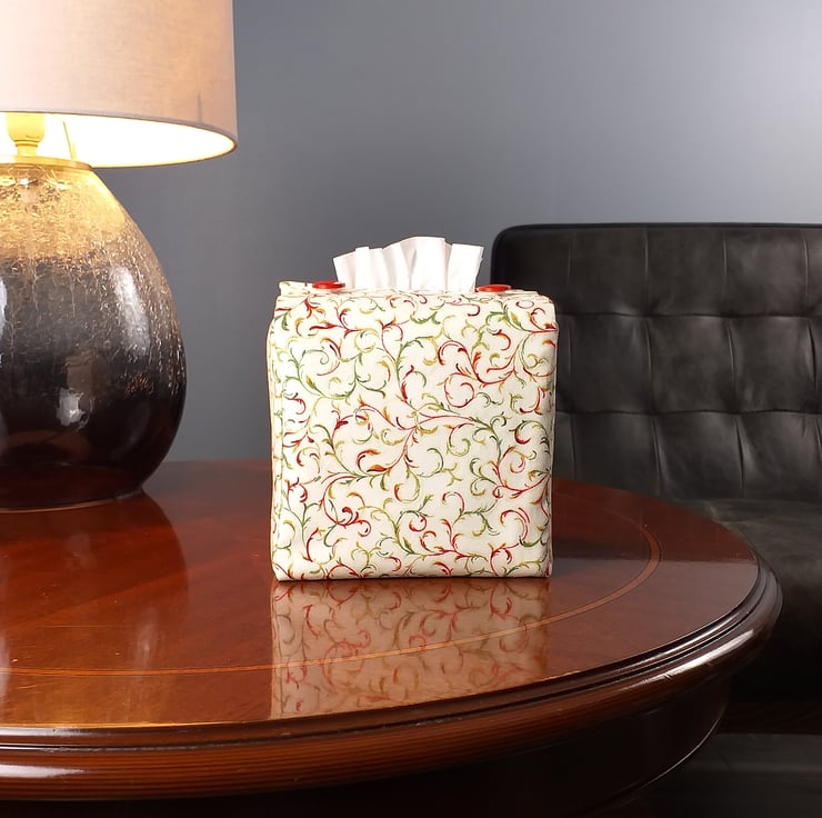 Printed cotton square tissue box cover handmade in Glasgow, Scotland