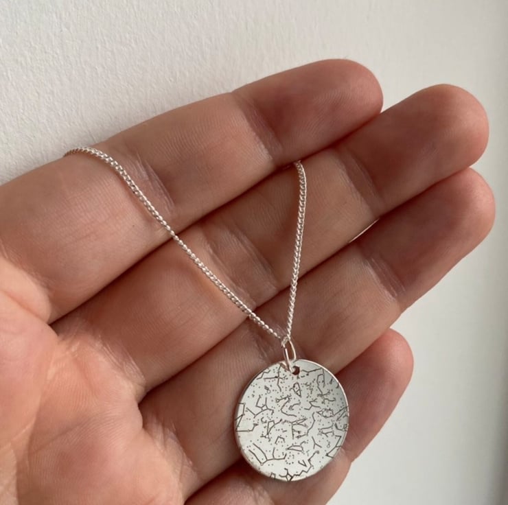 Stainless steel pendant measures 20 mm (0.8").and the sterling silver chain length is 18" (45cm).