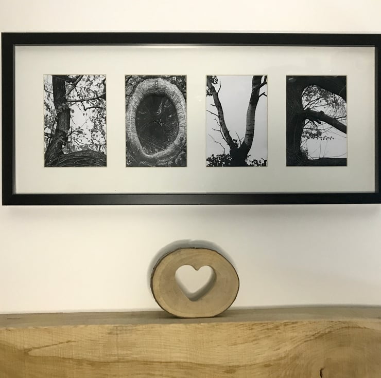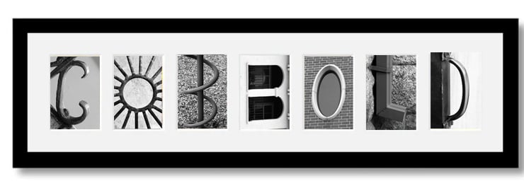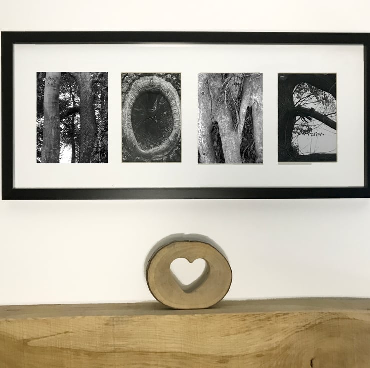 A bespoke and personalised framed name picture. Your choice of name or word can be written in letterforms naturally found in nature which have been photographed and presented in a frame to finish off the picture or manmade letterforms.