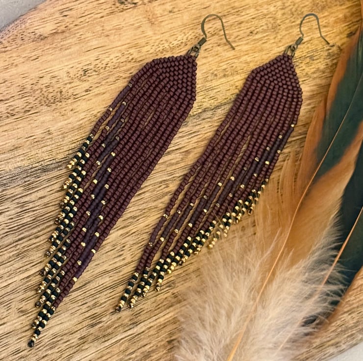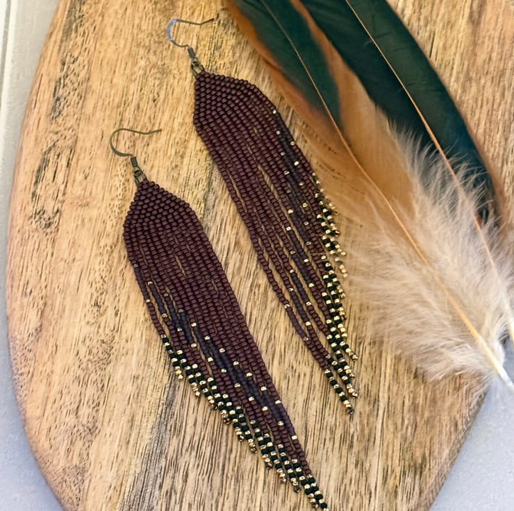 These are lovely long beaded earrings handmade with Miyuki seed beads, they are inspired by my love of Native American jewellery.