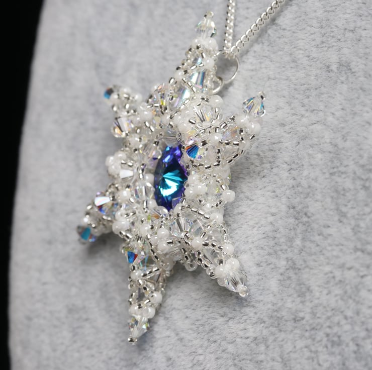 The pendant has been made using a tutorial from Diana Balogh, her tutorial being called the ‘Snowflake Pendant’. Diana gives permission for purchasers of her tutorials to make and sell jewellery based upon them. A copy of this tutorial can be purchased at http://dianabalogh.com .
