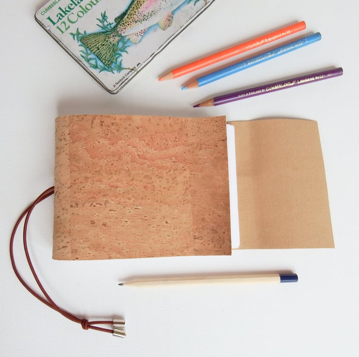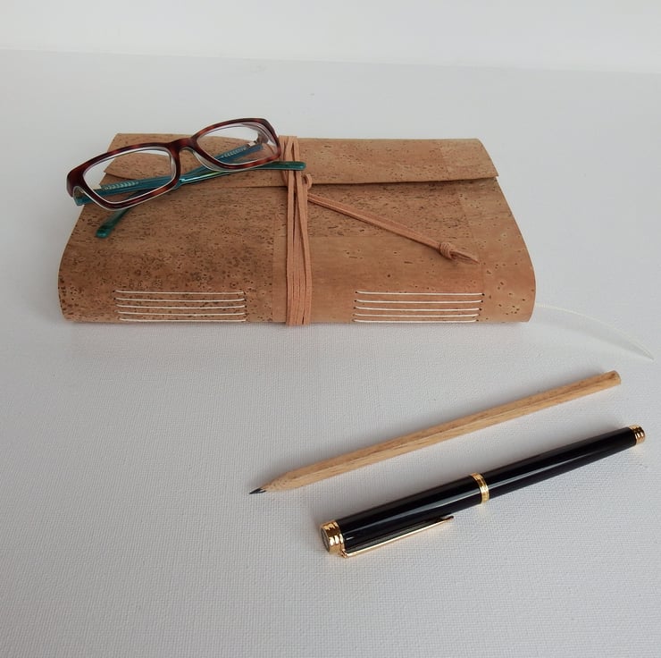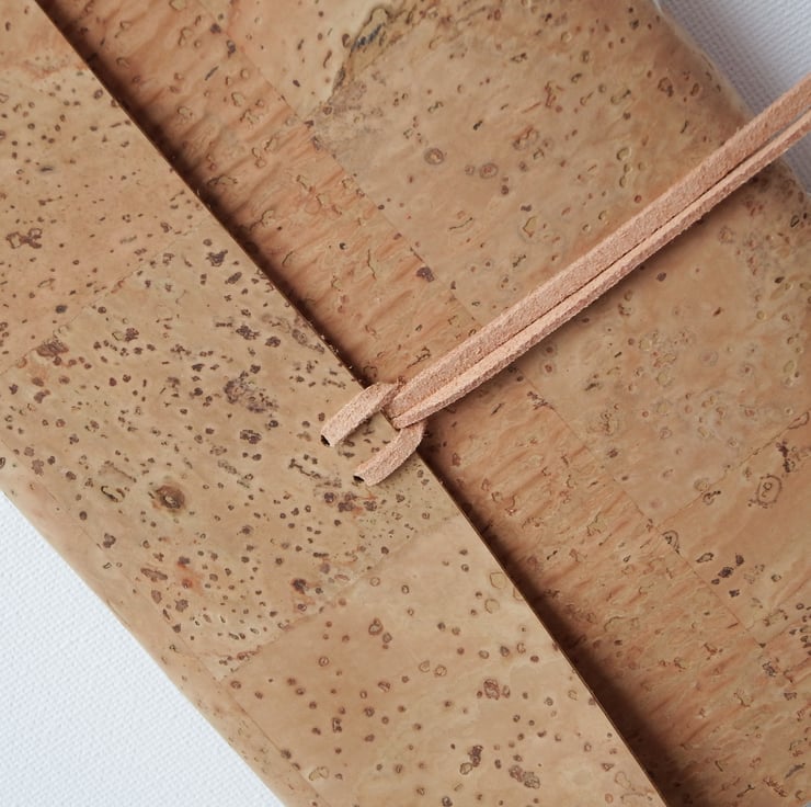 The Cork is a gorgeous soft and very tactile fabric, perfect for soft cover Journals. The Journal is closed with a faux suede fabric wrapped around and tucked in.