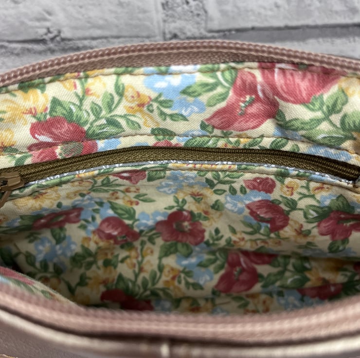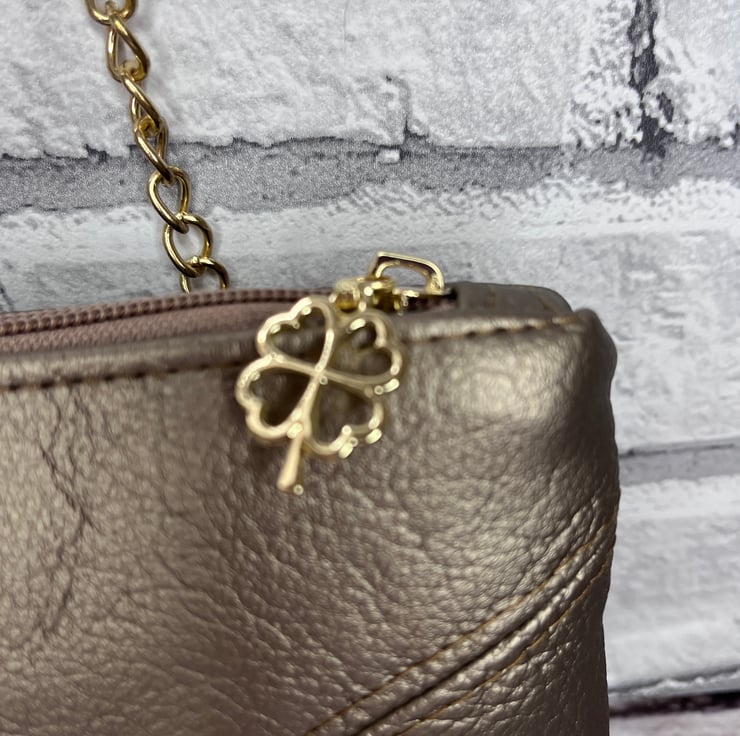 Made from quality bronze faux leather with gold hardware for added bling. Inside there is a zipped pocket to keep your valuables secure and closed with a full length zip.