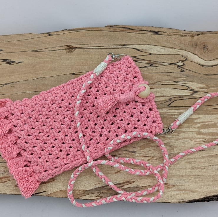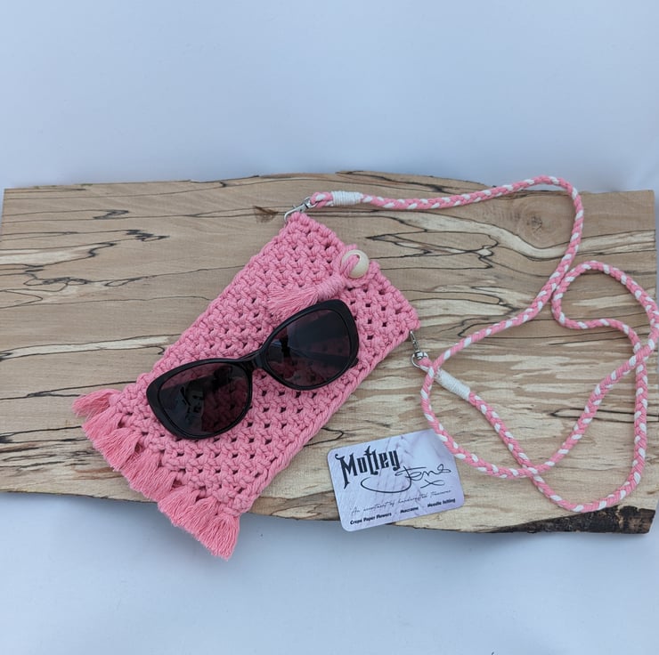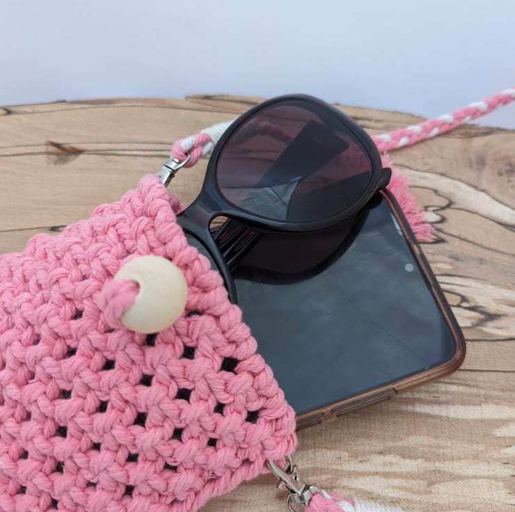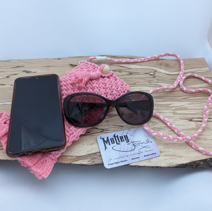 Calling all festival lovers! This macrame pouch is perfect for keeping your essentials safe such as your mobile phone and sunglasses. It will even fit your bank card and a lip gloss although I would recommend not to overload the pouch too much as it could compromise the integrity of the item.