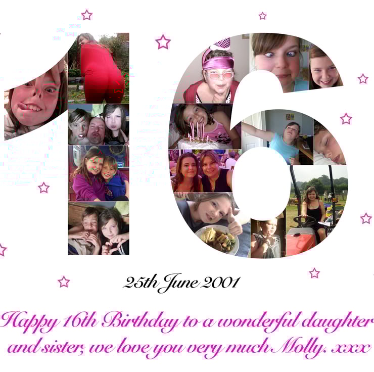 A Personalised Photo Collage Print for any age, a perfect gift for a birthday or anniversary.