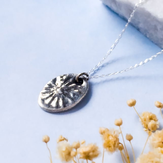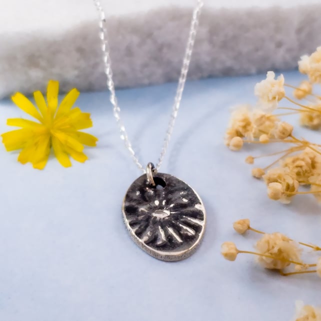 The wildflower pendant measures approximately 20mm x 14mm and comes on a sparkly 18" recycled sterling silver chain.