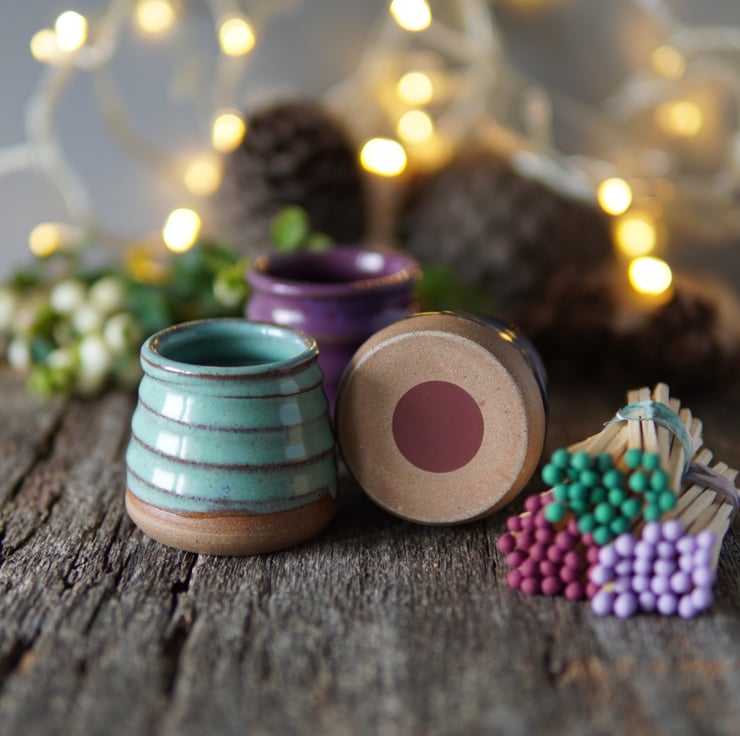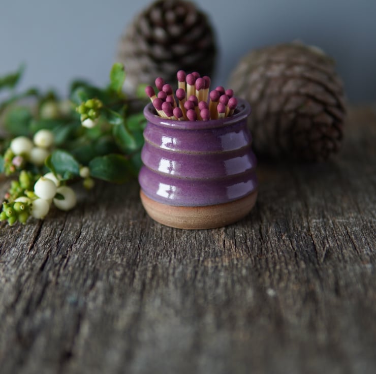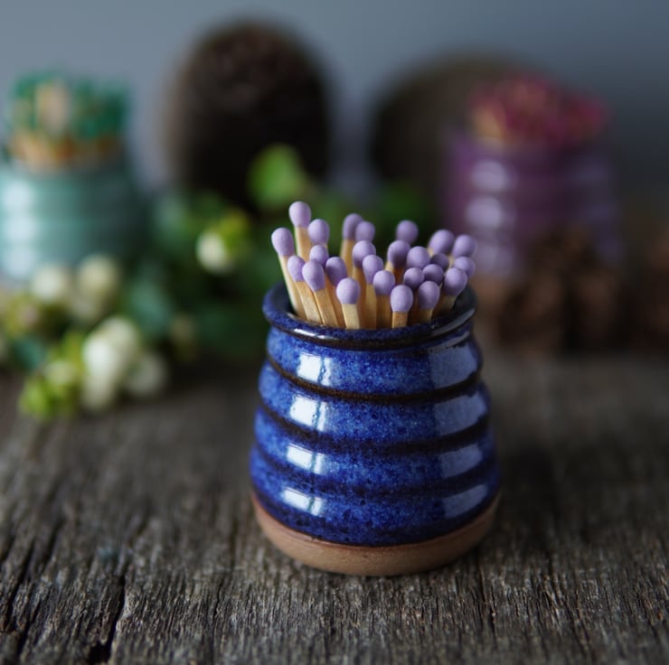 Gorgeous little hand thrown match pots, lovely addition to anyone’s mantelpiece or in the kitchen.