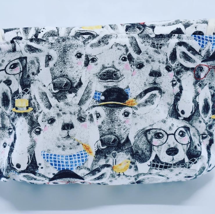 Cosmetic or make up bag. Pet lover gift featuring a fun print of animals.