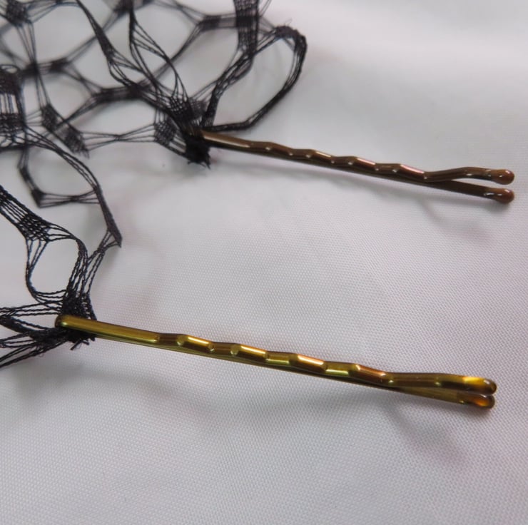 The ends of the veil are hand sewn onto two hair grips (kirbi grips) please choose the colour to best match your hair, they can be positioned at the side of the head.