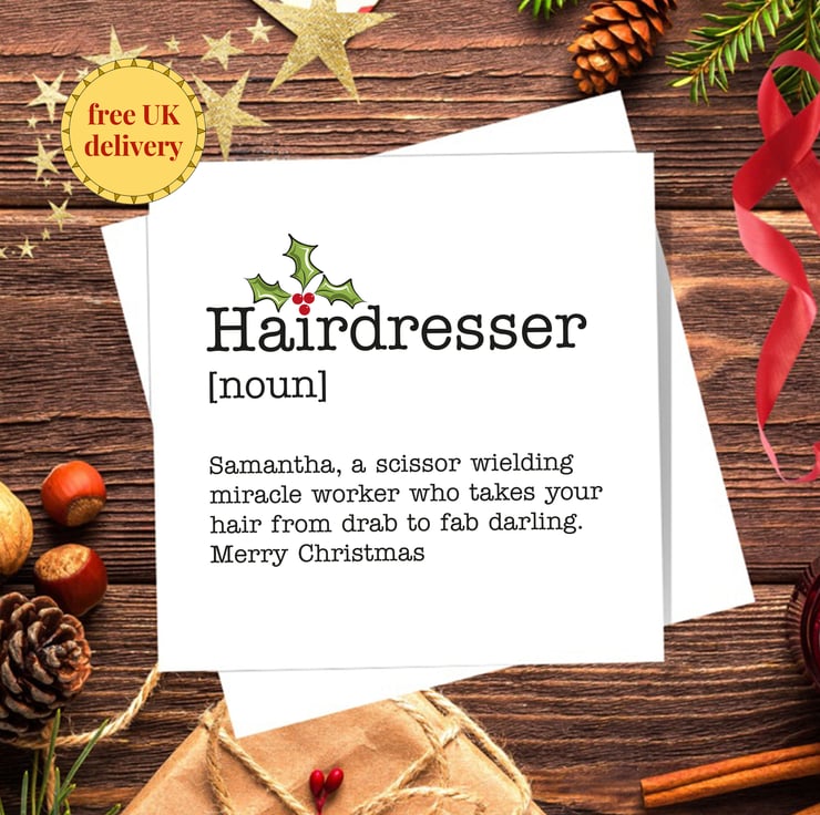 Perfect Christmas card for your wonderful hairdresser. Can be personalised on front of the card, add their name in the 'choose options' box when ordering.