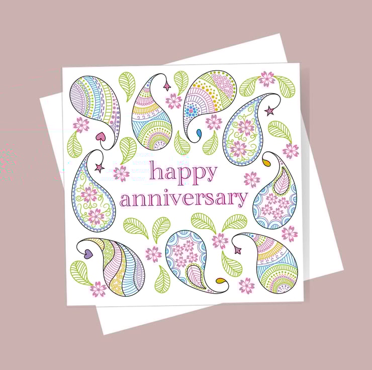 A beautiful Anniversary card in a colourful, modern design.