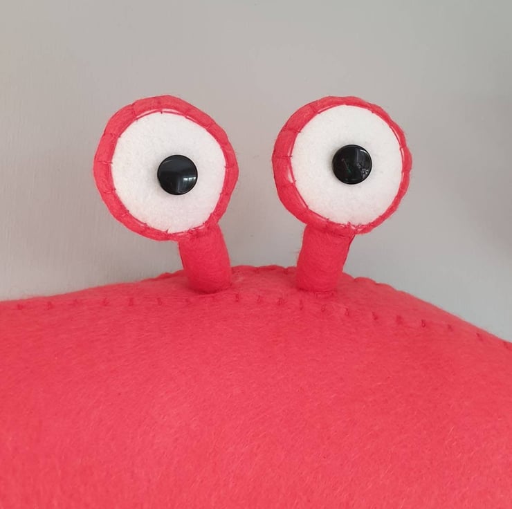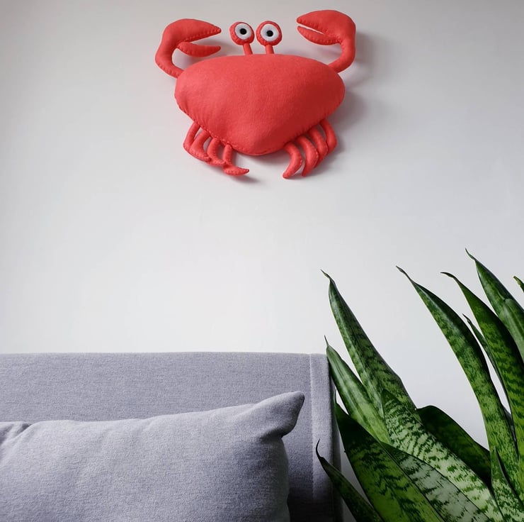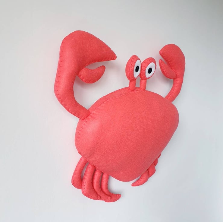 Predominantly made using Felt, with buttons or beads for the eyes and embroidery cotton for the decorative stitching. Each head is filled with fibre fill wadding, and is backed with an inner disc of mount board for strength so it hangs neatly on the wall from a metal D loop at the back.
