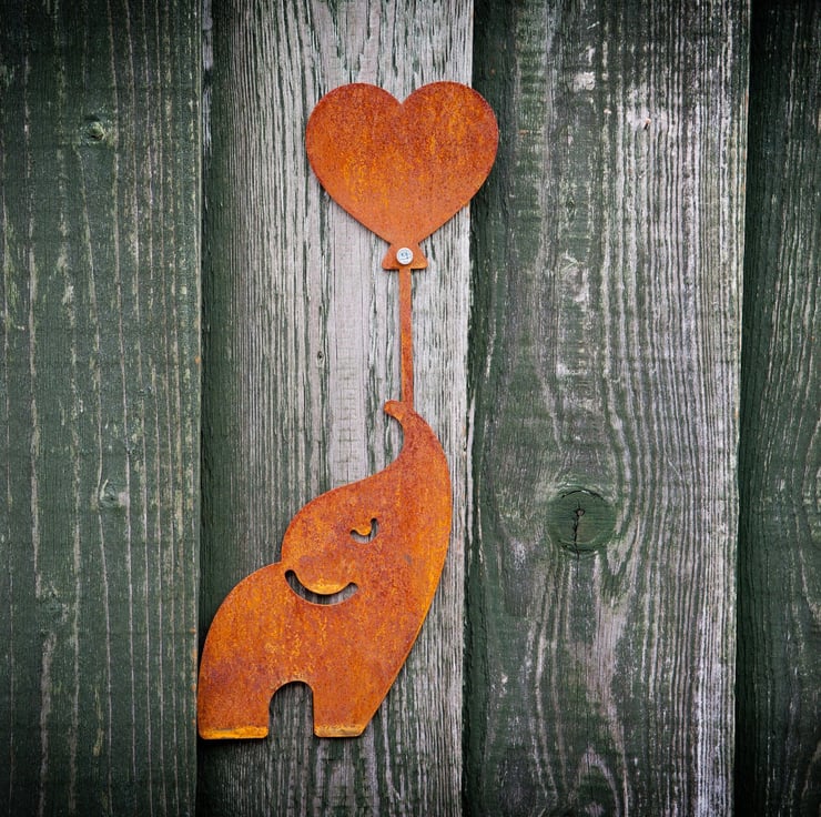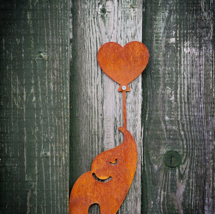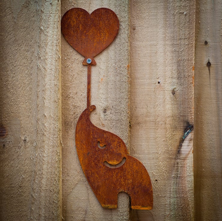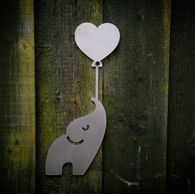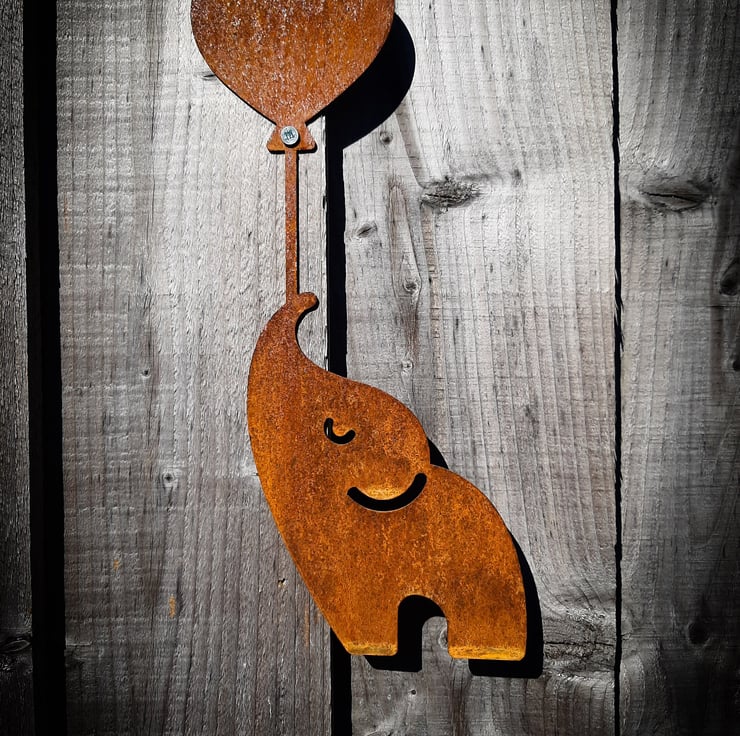 A quirky gift (or a treat for yourself!), our cute elephant holding a heart balloon can be hung on a fence, wall, pergola, arbour, balcony, window box, artist's studio or tree and will add fun and character to any garden, patio, terrace, veranda, greenhouse, yard, allotment or any outdoor space.