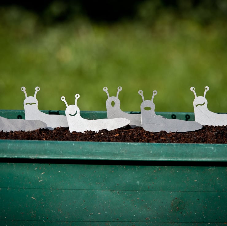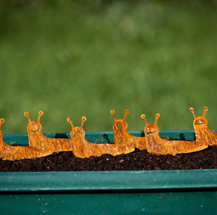 Our Slug 'Family' of metal plant pot ornaments have 6 different faces and are sold in a family pack which includes one of each face.