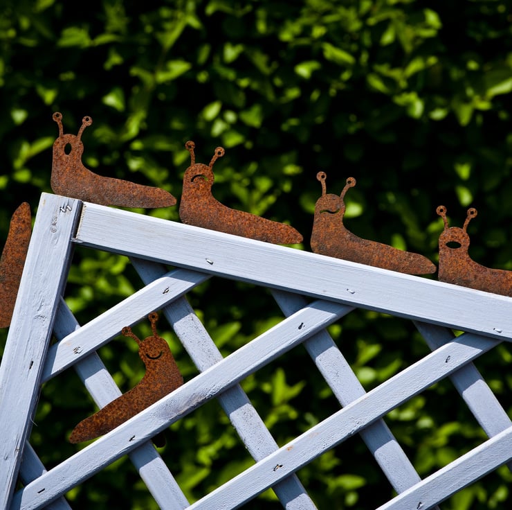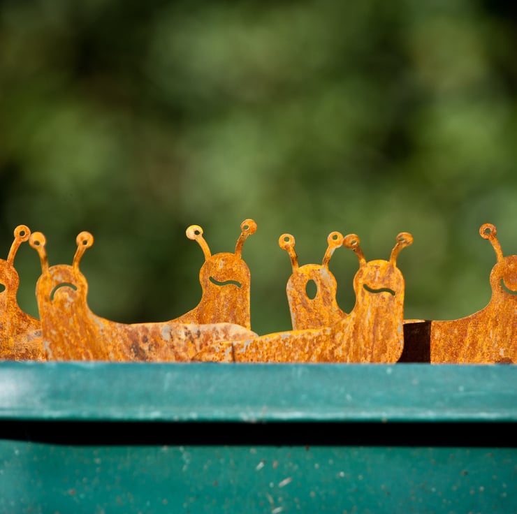 To speed up the rusting process an occasional spray of salty water over the first few days or so will help create the rust effect. Alternatively you could colour your slug family with metal paint to create your own unique piece of artwork.