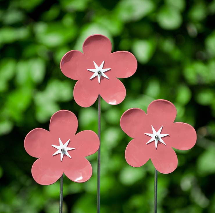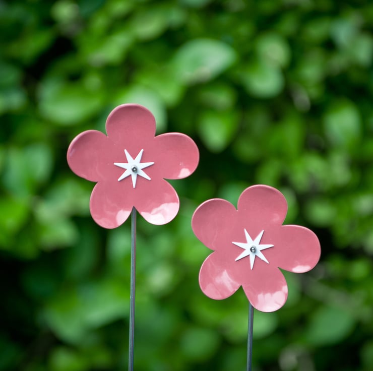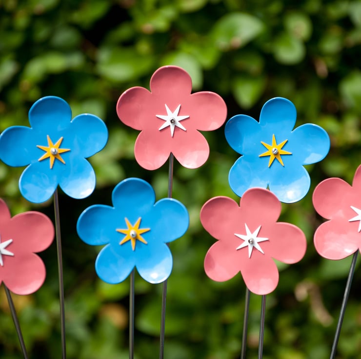 The stainless steel stems of these pretty in pink forget me not flowers are easily pushed into the ground making a colourful display in your flower beds, planters or patio pots, lawn, window box or hanging basket.