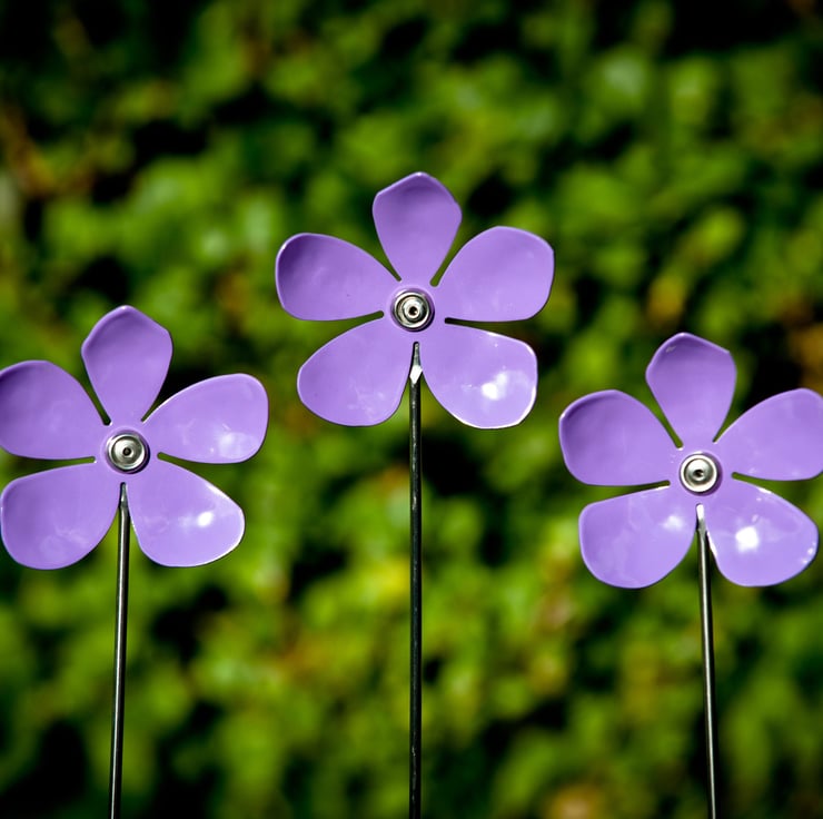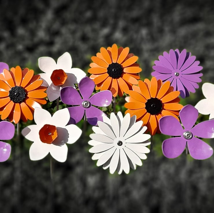 The mild steel petals are shaped, formed and hand finished by Paul, we then have them powder coated for a quality finish. Each flower is assembled by hand, in our home workshop in Cheshire, onto a stainless steel stem.