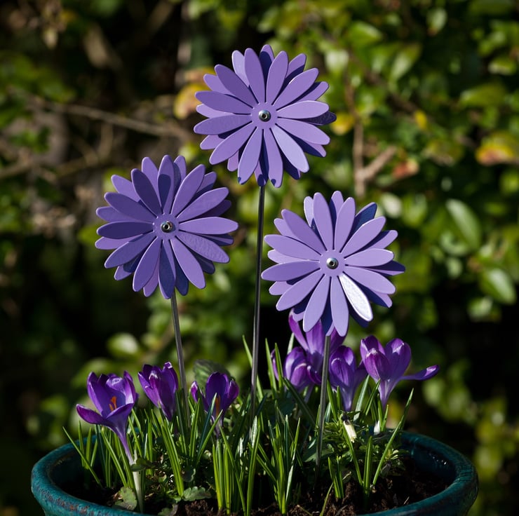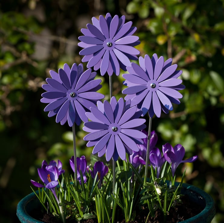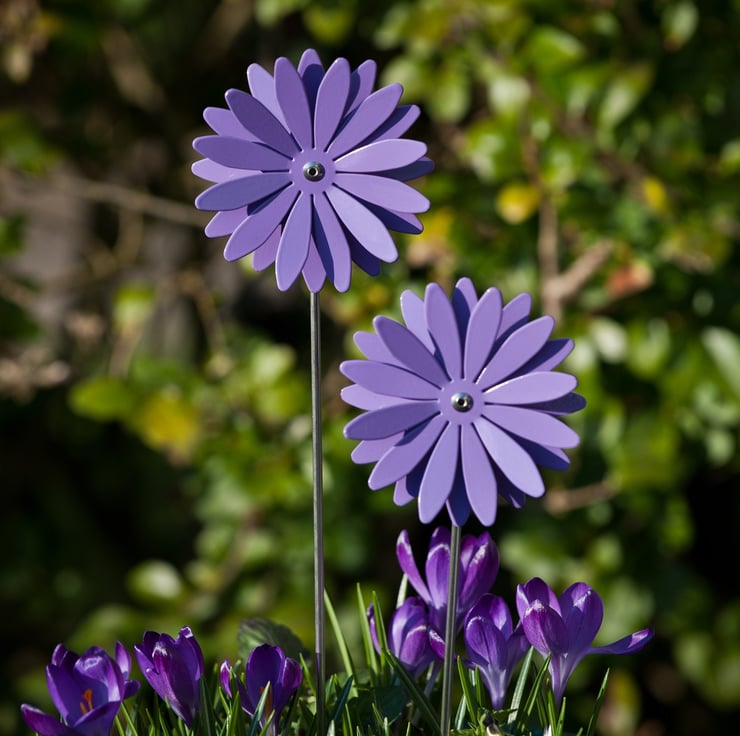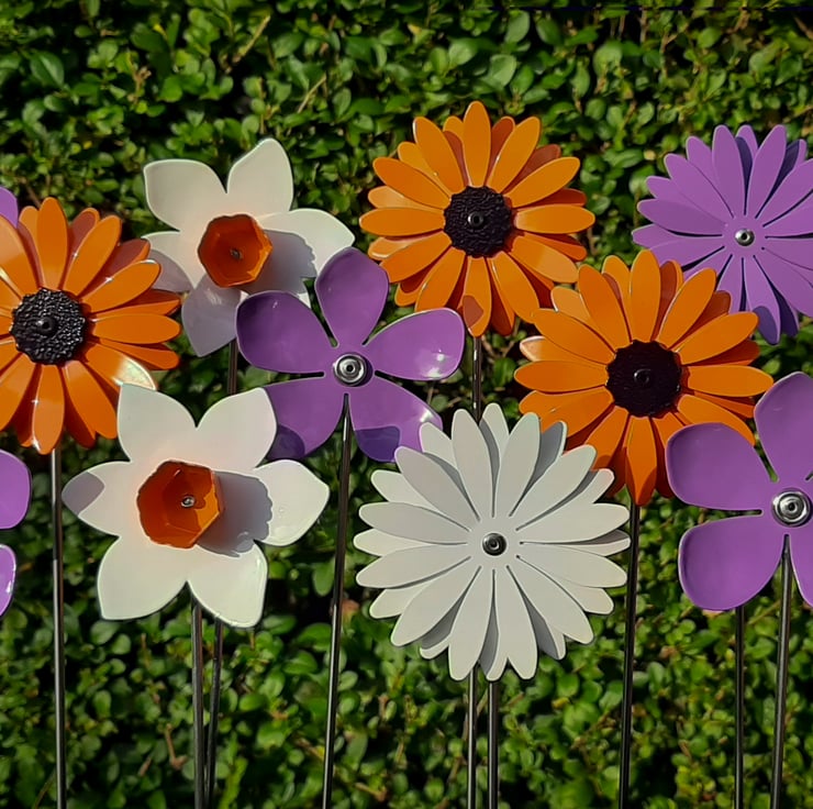 The aluminium petals are shaped, formed and hand finished by Paul, we then have them powder coated for a quality finish. Each flower is assembled by hand, in our home workshop in Cheshire, onto a stainless steel stem.