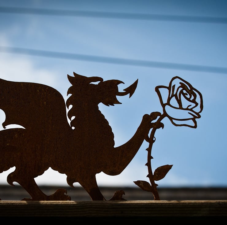 Supplied in ready to rust raw mild steel the Welsh dragon English rose will rust over time so you can experience the enjoyment of watching your Welsh dragon English rose as it naturally turns rusty.