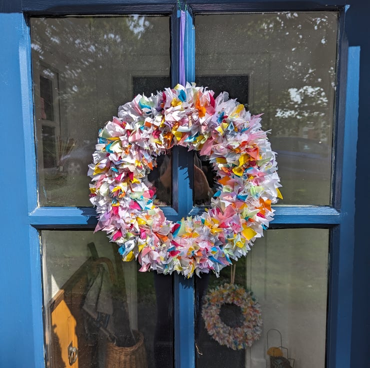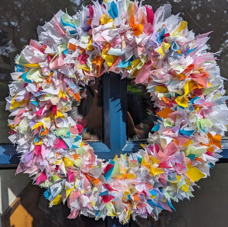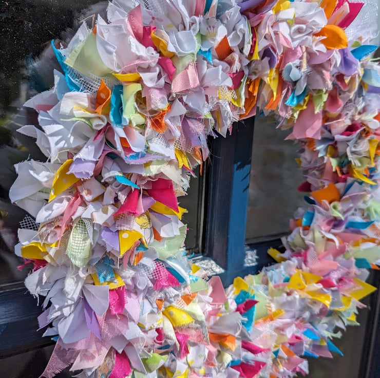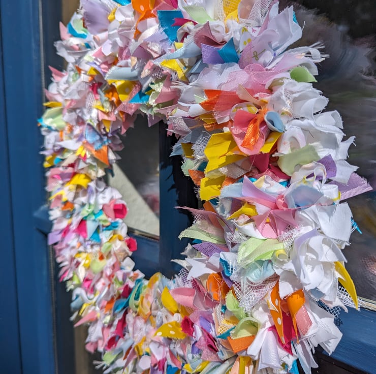 I collect ribbons and material from the chocolate industry and local seamstresses and upcycle them into wreaths.