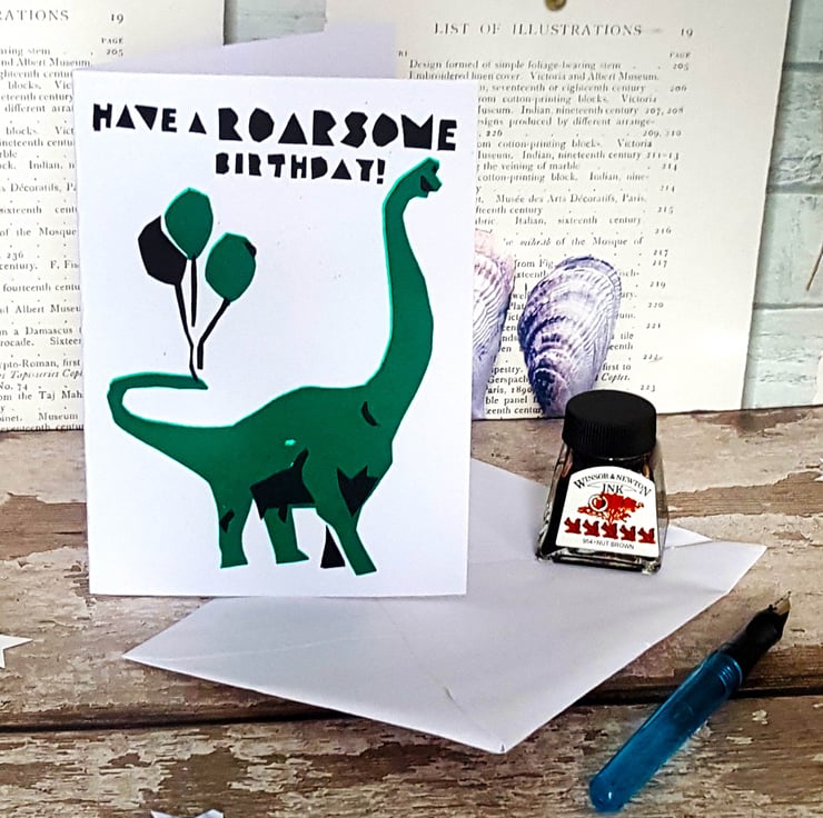 'Have a ROARSOME Birthday!' greeting card, perfect to show a dinosaur fan just what they mean to you on their birthday!
